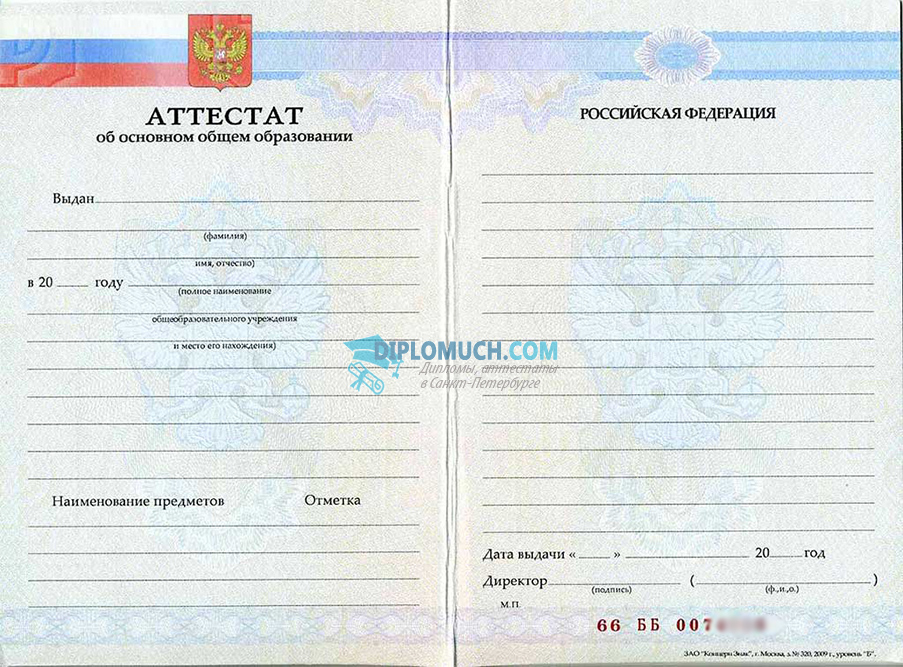Купить аттестат 2007-2009 года